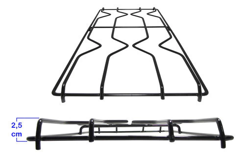 Par de rejillas enlozadas Longvie negras compatibles con hornallas modelos 411 y 600. Medidas 52,5x23,5 cm, fabricadas en material durable y resistente al calor, ideales para reemplazo o mantenimiento de tu cocina.